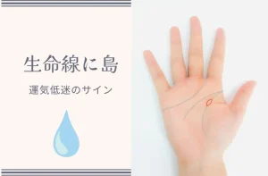 フィッシュと島は形が似ているので、見間違いが多い印です。ところが意味は全く逆で、フィッシュが吉相であるのに対して、島は凶相です。見分けるときの大きなポイントは、魚のしっぽにあたる線の交差があるかどうか。島は楕円形で線の途中にあることが多く、フィッシュは単独だったり線にくっつく形であらわれることが多いです。